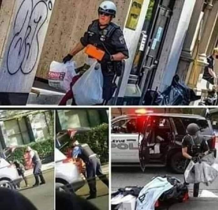 Alors que les manifestations se multiplient aux États-Unis depuis le décès de George Floyd écrasé par un policier, certains en profitent pour piller les magasins. Une photo prise par un témoin montre des policiers américains en train de dévaliser un magasin sans complexe.
