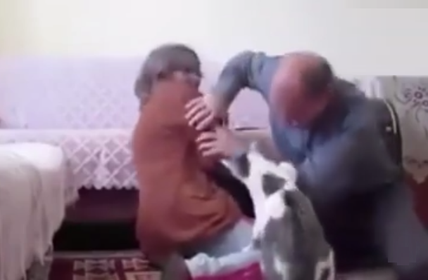 Il fait semblant de frapper sa femme: regardez comment va réagir leur chat !