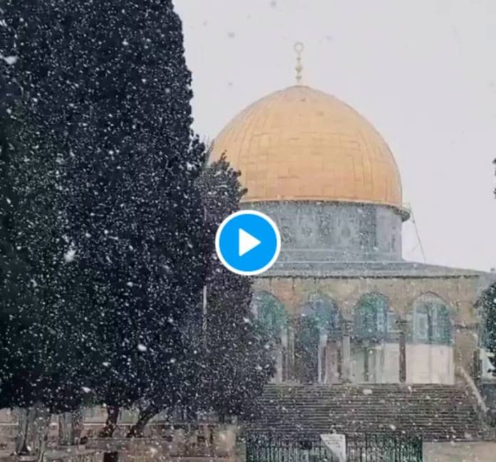 It’s snowing tonight at the Dome of the Rock (قبة الصخرة) in Jerusalem: a friend forwarded this magical photo and I thought I’d share it with you. pic.twitter.com/0rJbRzfzS9