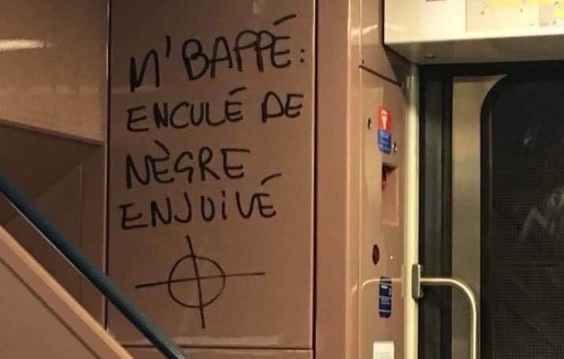 C’est Kylian Mbappé qui fait aujourd’hui les frais de cette haine gratuite. Sur la ligne C du RER, un tag raciste vise directement le champion du monde français du Paris Saint-Germain.