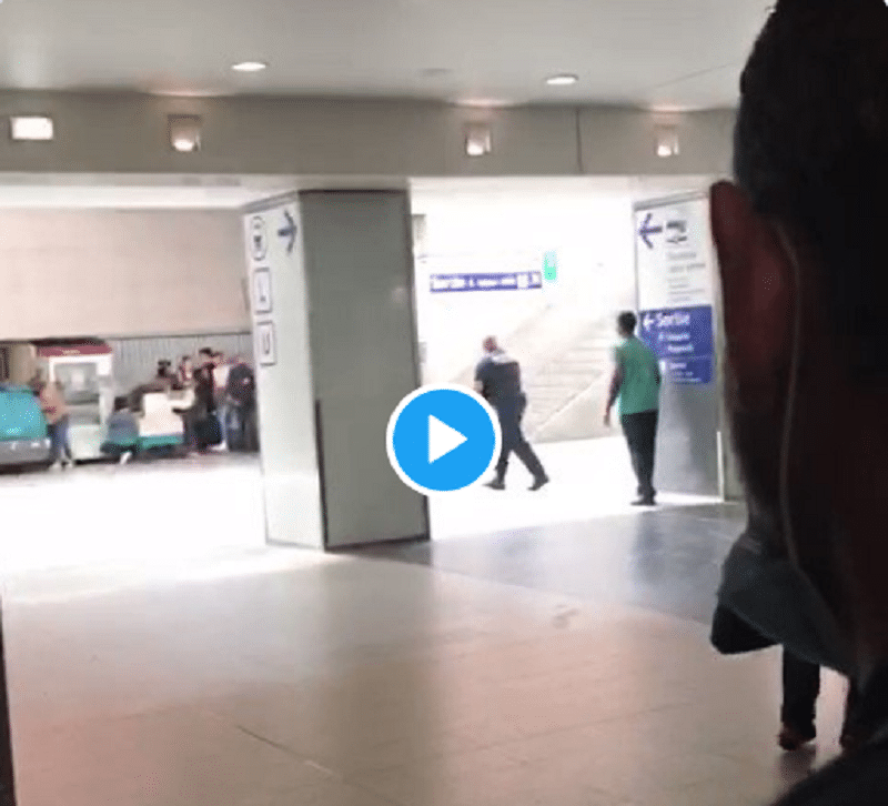 Dans la vidéo ci-dessous, on voit la foule obligée de lever les mains pour pouvoir sortir :