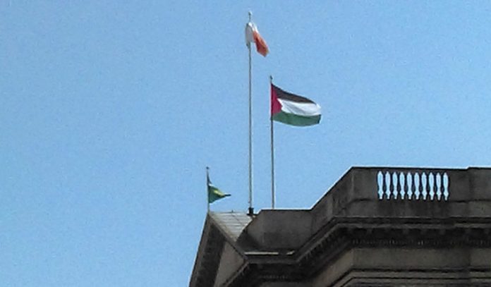 Suite au vote du conseil municipal de la capitale irlandaise (Dublin), il a été décidé de hisser le drapeau de la Palestine au sommet de l’hôtel de ville jusqu’à la fin du mois de mai « comme geste de solidarité avec le peuple palestinien ».