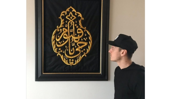 Mesut Ozil, le joueur d’Arsenal, équipe de football de Premier League anglaise, a pris la pose près d’une toile plutôt singulière.