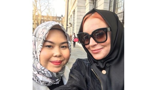 Lindsay Lohan n’en finit plus de semer le doute sur sa reconversion à l’Islam, tantôt se baladant avec un exemplaire du Coran à la main, tantôt posant en burkini sur une plage de Thaïlande et maintenant en Hijab noir lors d’un défilé de mode à Londres.