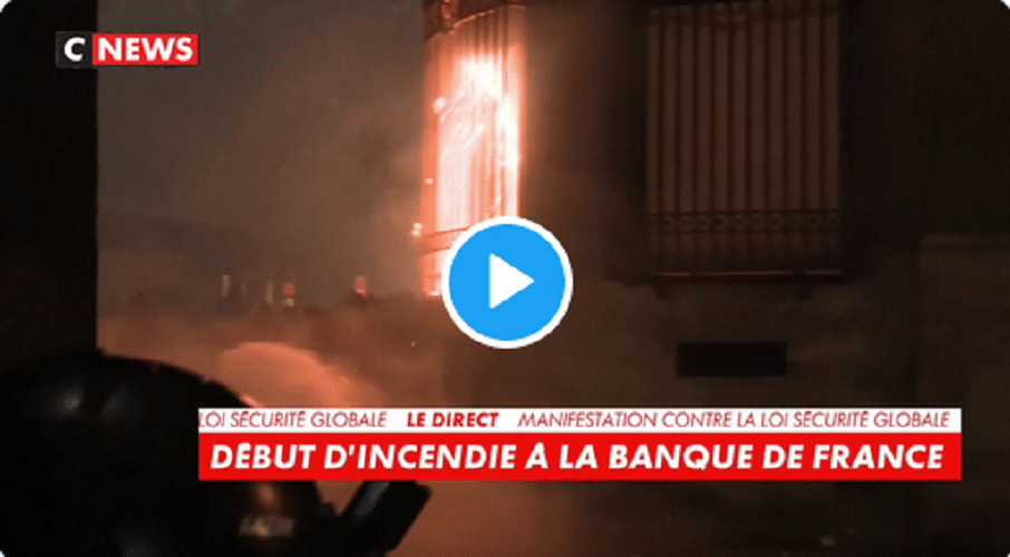 Manifestation contre la loi sécurité globale : les casseurs mettent le feu à la Banque de France pic.twitter.com/KXPDuENiDp