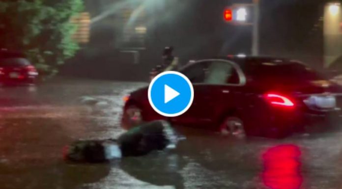 Alors que l’ouragan Ida a provoqué de graves inondations à New York, une personne qui semblait livrer de la nourriture a été filmée en train de pousser un vélo dans l’eau jusqu’à la taille avec un sac accroché au guidon.