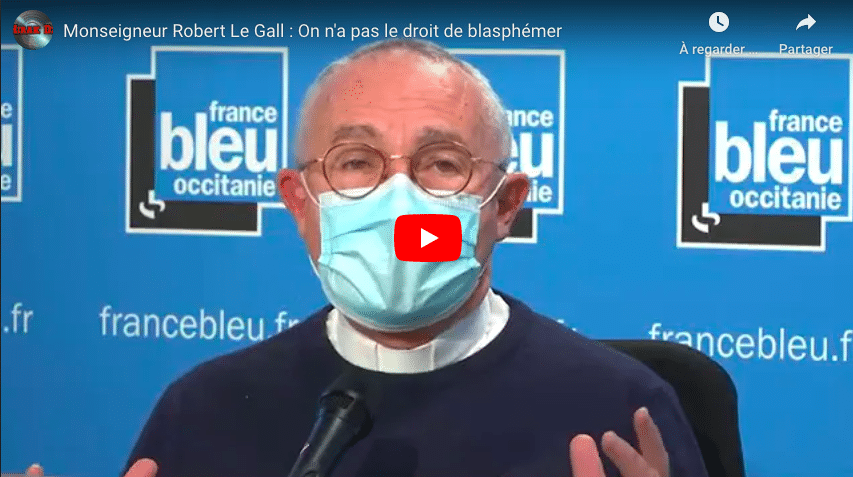 Interrogé ensuite pour savoir s’il défendait la liberté de blasphémer la religion, Mgr Le Gall a répondu : « Non, personnellement, je ne pense pas. On ne se moque pas impunément des religions. On ne peut pas se permettre de se moquer des religions, on voit les résultats que cela donne ».