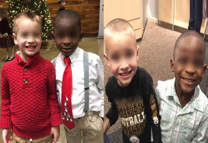 Comme nous pouvons le remarquer sur la photo, les deux garçons ne sont pas très ressemblants, l’un est blanc et l’autre noir. Un détail dont ne s’embarrassent pas les deux jeunes amis.