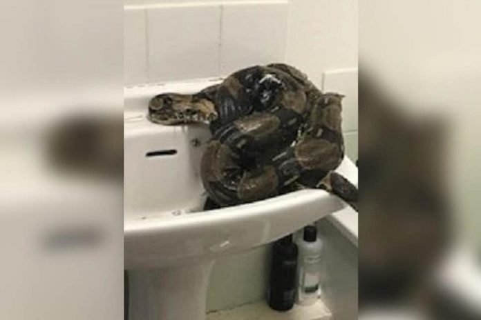 La police a été « sidérée » après qu’une femme qui a trouvé un Boa Constrictor enroulé autour de l’évier de sa salle de bains les ait appelés pour retirer le reptile.