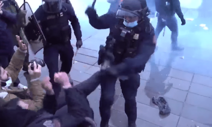 Des tensions ont une nouvelle fois éclaté entre manifestants et police samedi 30 janvier 2021 sur la place de la République à Paris, en marge de la manifestation contre les lois de « Sécurité globale » et « séparatisme ».