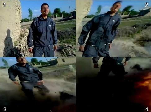 C’est dans la ville de Albuamr à Deir ez-Zor en Syrie, que la scène a été filmée. Le téléphone tombe au sol pendant l’explosion, et l’homme s’est ensuite mit à Shahad (Ashadou lah ilah wâ ilala wâ Ashadou ana Mohamed wâ Rassul Allah), tandis que les cris des femmes et des enfants commencent à retentir près de lui.