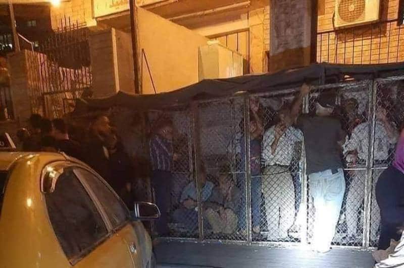 Les images, largement partagées sur les réseaux sociaux, montrent des gens entassés dans de petites cages, qui ont été utilisées pour réguler les files d’attente.