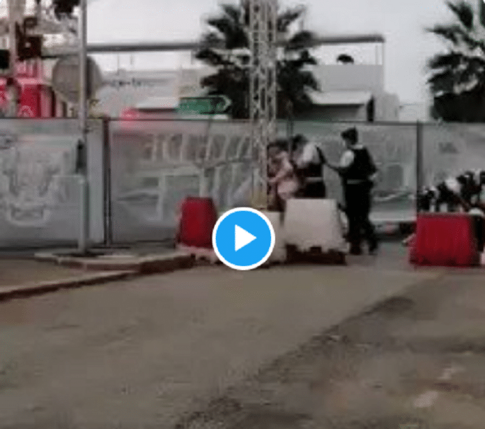 Alors qu’on entend la femme crier, on voit l’homme plaqué au sol par plusieurs policiers. Les deux personnes sont ainsi interpelées et menottées, sous le regard de témoins abasourdis.