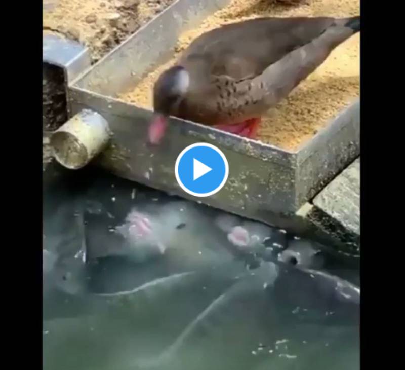 Un canard nourrit des poissons affamés seulement avec son bec - VIDEO