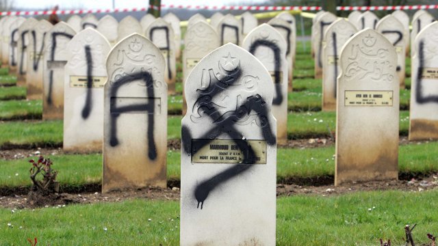Les symboles nazis et le logo du parti politique d’extrême droite grecque, Golden Dawn, ont été peints à la bombe sur les pierres tombales musulmanes et des tracts du parti jonchant le cimetière visant les 150.000 habitants d’origine turque de la région.