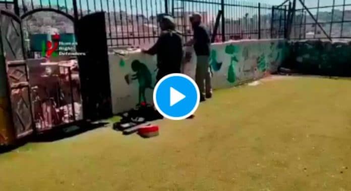 An Israeli settler backed by occupation forces invaded a Palestinian primary school in Occupied Hebron and terrorised Palestinian children.#Palestine #Palestinians pic.twitter.com/zfYryHX4zY