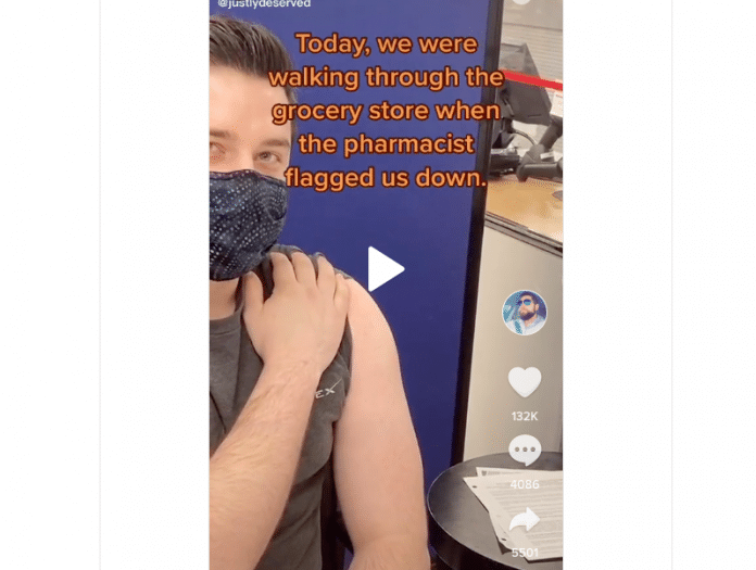 La vidéo d’un étudiant de Washington recevant une dose de vaccin contre le Covid-19 alors qu’il ne fait pas partie des catégories de population prioritaires avait été visionnée plus de 700.000 fois sur TikTok.
