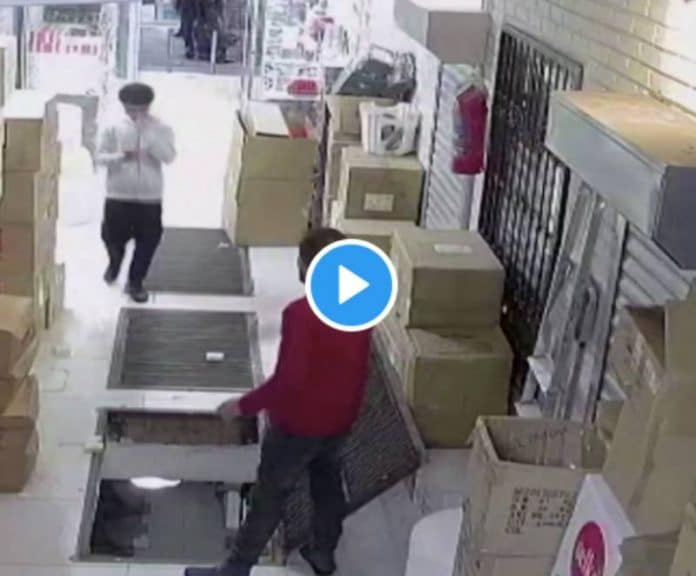 La scène dure quelques secondes seulement, mais les images son saisissantes. Un homme est tombé dans un entrepôt à plusieurs mètres de profondeur alors qu’il regardait son téléphone portable. Après avoir dévalé les niveaux d’un entrepôt sur plusieurs mètres, l’homme s’est miraculeusement retrouvé en position assise sur un tas de caisses empilées. Déboussolé, l’homme ne semble pas réaliser ce qu’il s’est passé.