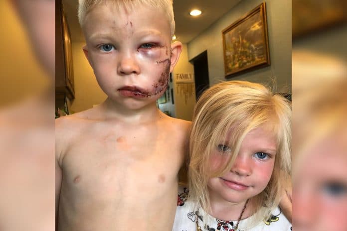 L’enfant a préféré endurer les morsures plutôt que de laisser sa sœur sans défense. Il a été conduit à l’hôpital où il a reçu environ 90 points de suture au visage.