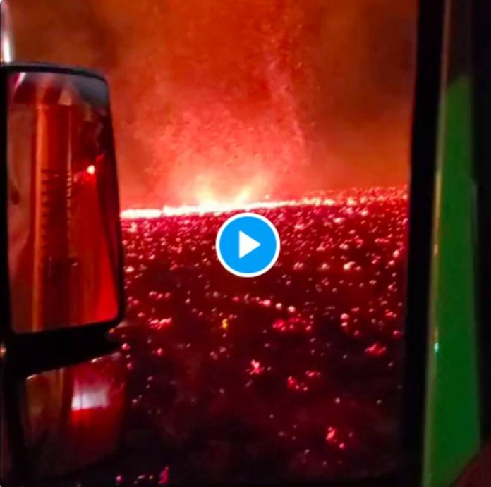 Dans la vidéo publiée le 12 septembre, on peut voir une tornade de feu unique ou «Firenado» qui fait rage à travers d’énormes parcelles de terre en feu alors que les pompiers se précipitent pour la doser. La vidéo semble avoir été tournée près d’un camion de pompiers avec sa sirène qui résonne.