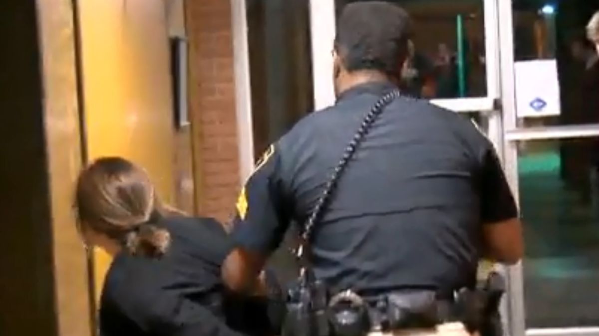 Devant son refus de descendre de la rame, le policier l’a attrapée par le bras et tirée avec force hors du wagon avant de la plaquer contre le mur devant des passagers stupéfaits.