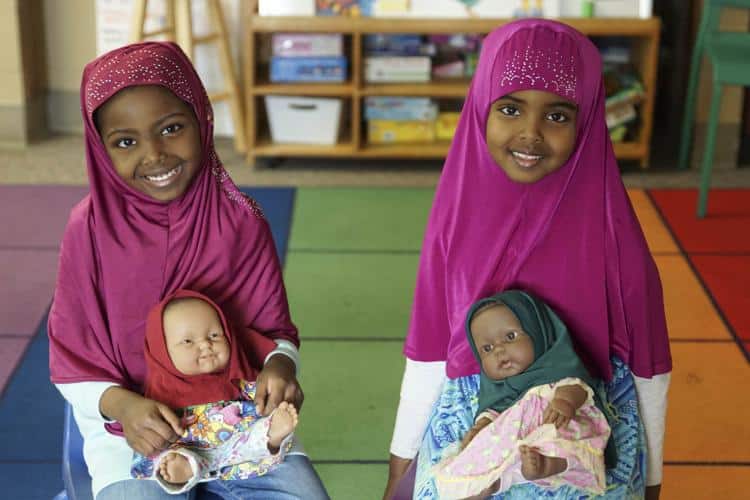 Deux élèves de la classe de Marston qui portent des Hijabs étaient enthousiastes à l’idée de trouver les poupées à leur arrivée à l’école cette année.