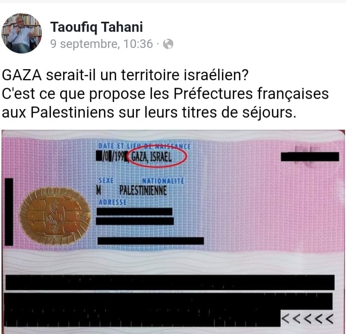 Gaza serait-il un territoire israélien? C’est ce que propose les préfectures françaises aux Palestiniens sur leurs titres de séjours