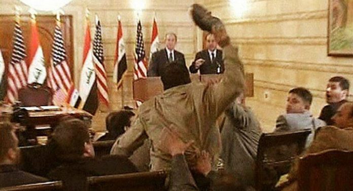 Munthadar Al Zaïdi est ce fameux journaliste irakien, devenu célèbre suite au lancé de chaussures sur le Président américain Bush lors d’une conférence de presse en Décembre 2008.
