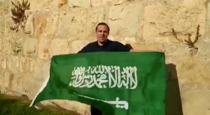 Le ministère israélien des Affaires étrangères a publié sur son compte Twitter une vidéo d’un israélien brandissant le drapeau saoudien devant les murailles de la Vieille ville de Jérusalem.