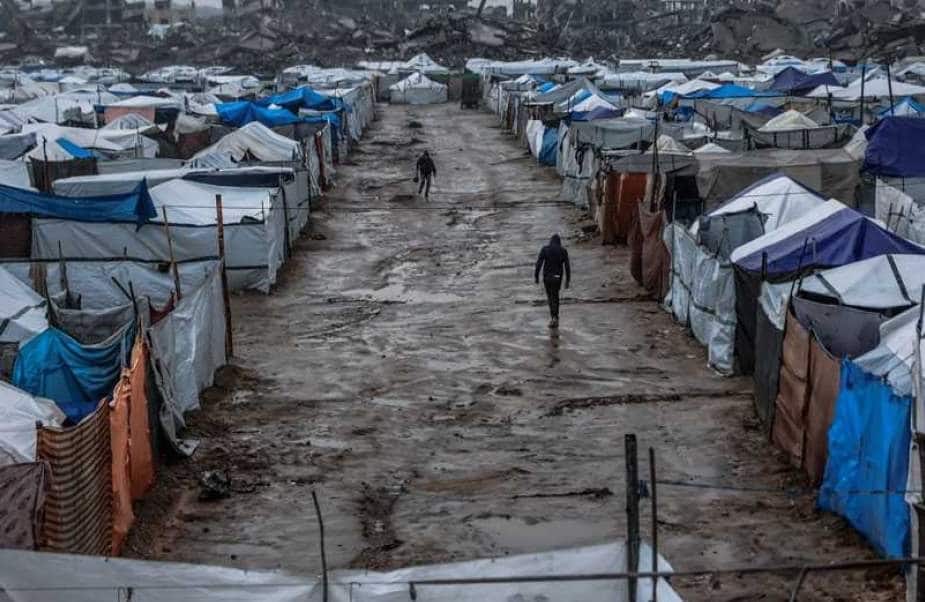 Des températures glaciales combinées à de violentes intempéries ont frappé Gaza, en particulier les camps de personnes déplacées dont les maisons ont été détruites au cours de deux ans de guerre. Les pluies ont provoqué l’effondrement de murs, de maisons et de tentes — la plupart déjà fragilisées par des bombardements antérieurs — et ont inondé près de 90 % des abris de fortune abritant des familles déplacées.