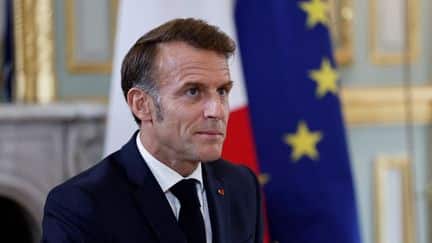 Le président français Emmanuel Macron lors d’une visioconférence sur la situation au Moyen-Orient avec des pays partenaires européens et arabes, au Palais de l’Élysée, le 15 septembre 2025.