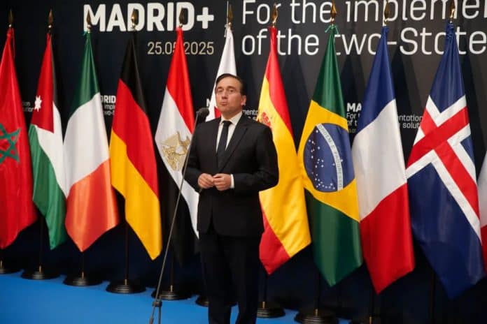 Le ministre des Affaires étrangères espagnol a insisté dimanche sur le fait que la solution à deux États est la seule alternative au conflit entre Israël et la Palestine, et pousse pour des mesures concrètes en ce sens lors d’une réunion internationale à Madrid, rapporte Anadolu.