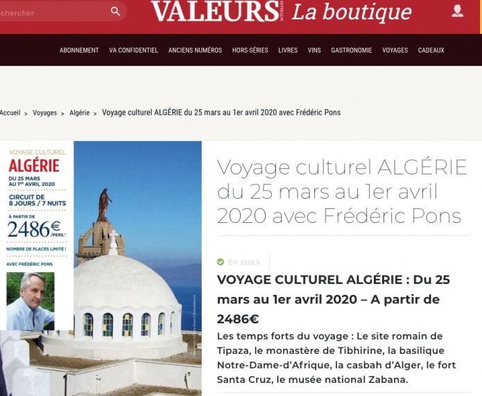 Pour faire décoller ses ventes, le magazine islamophobe Valeurs Actuelles connu pour ses « valeurs » proches de l’extrême-droite et « spécialisé dans la haine anti-musulmans » propose à ses lecteurs un voyage « culturel » en Algérie.