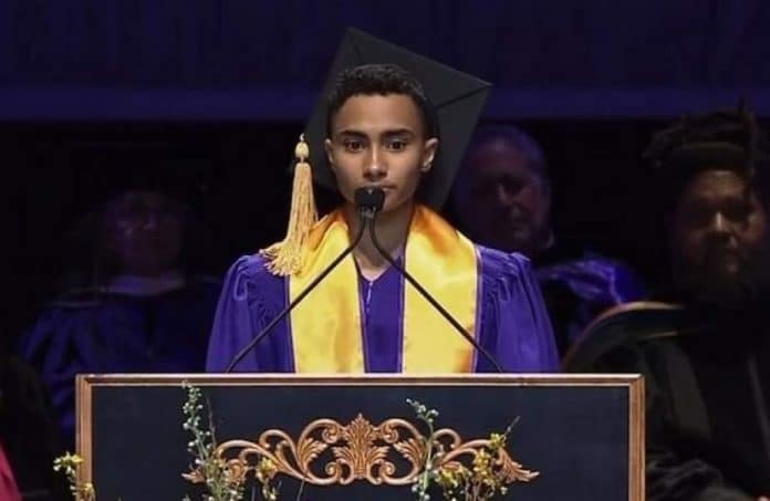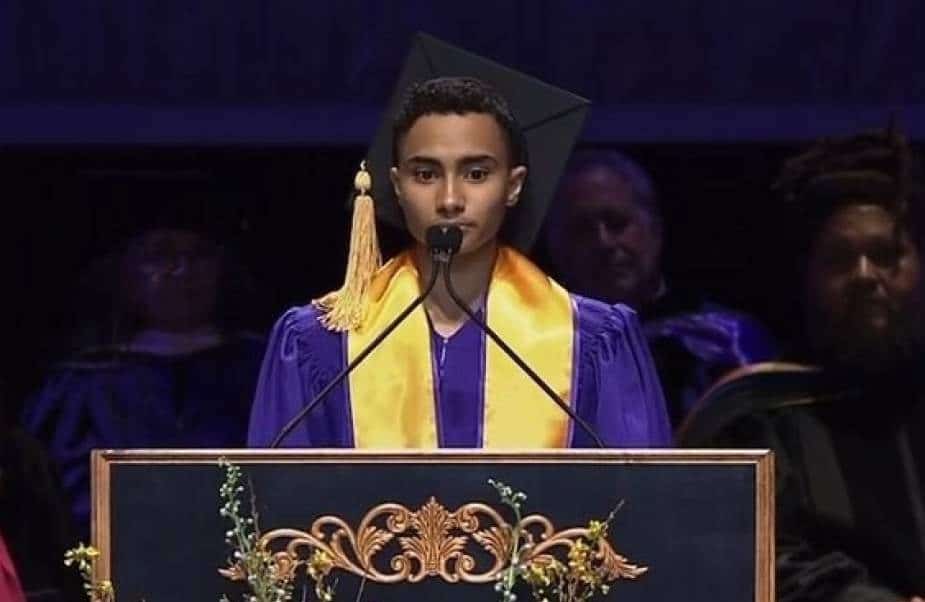 Une fois sur scène, l’étudiant a expliqué avoir été « très stressé à l’idée de faire ce discours », mais qu’il se sentait obligé de s’exprimer.