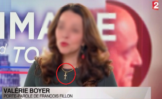 Elle a commenté la victoire de son candidat mais ce n’est pas tant ses propos qui ont suscité l’intérêt des français mais bien sa croix qui crevait l’écran.