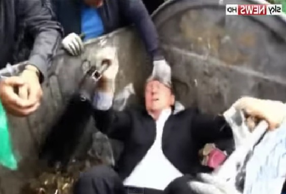 Un proche de l’ancien président ukrainien Viktor Ianoukovytch est pris à partie par une foule en colère qui décide de le jeter dans une poubelle.