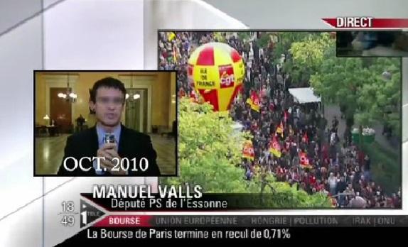 Autrefois, interrogé par iTélé, le 19 octobre 2010, alors qu’il n’était pas membre de ce gouvernement mais seulement député PS de l’Essonne, Manuel Valls s’insurgeait contre les blocages en s’indignant de la réaction du gouvernement François Fillon qui refusait lui aussi, le dialogue social concernant la réforme des retraites et son relèvement à 62 ans.