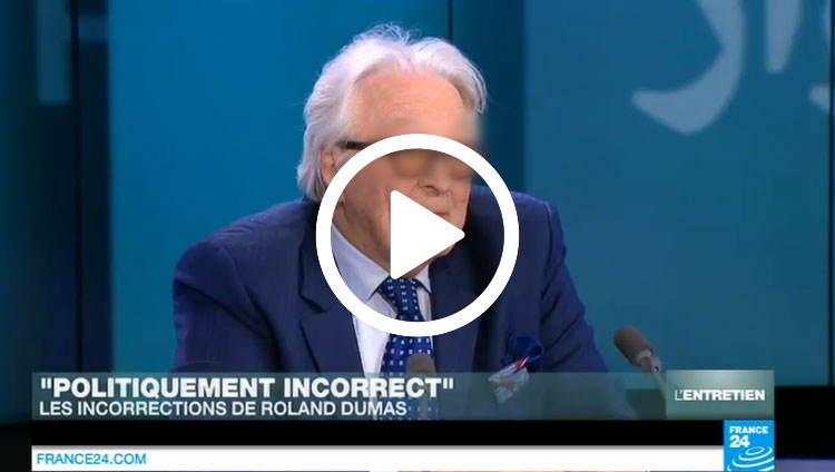 Dès que le mot « juif » est prononcé, c’est l’émoi, et Roland Dumas n’échappe pas à cette règle immuable. Les médias se sont fait écho pour l’accuser d’antisémitisme. Mais sans se départir de son flegme, il répond à ses détracteurs : « Vous voyez de l’antisémitisme partout. Vous croyez que je suis le seul à penser et dire ce que je dis ? On me pose une question, si je réponds “bien sûr que non”, personne ne me croira, et moi-même je ne me croirai pas. ».