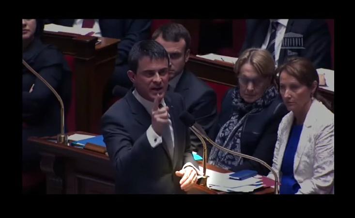 Dans cet extrait, Manuel Valls, premier ministre, répond de façon “énergique” à la députée FN Marion Maréchal Le Pen, qui venait de critiquer le PS. « L’insulte, la calomnie, c’est ce qui fonde votre parti », s’insurge Manuel Valls, visiblement très énervé.