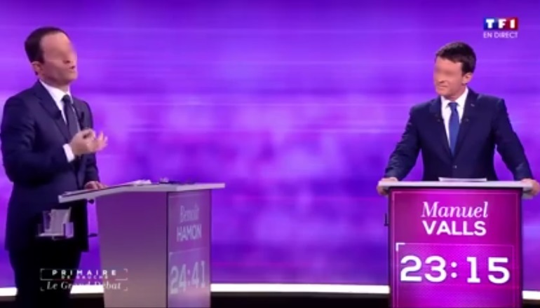 Les deux finalistes de la primaire, Benoît Hamon et Manuel Valls, se retrouvaient pour une ultime confrontation, mercredi soir.