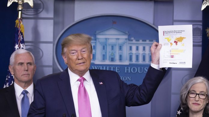 À la Maison Blanche, Trump a blâmé à plusieurs reprises la Chine pour sa gestion de l’épidémie, critiquant le pays pour restreindre les voyages intérieurs pour ralentir le virus mais pas les voyages internationaux pour l’empêcher de se propager à l’étranger.
