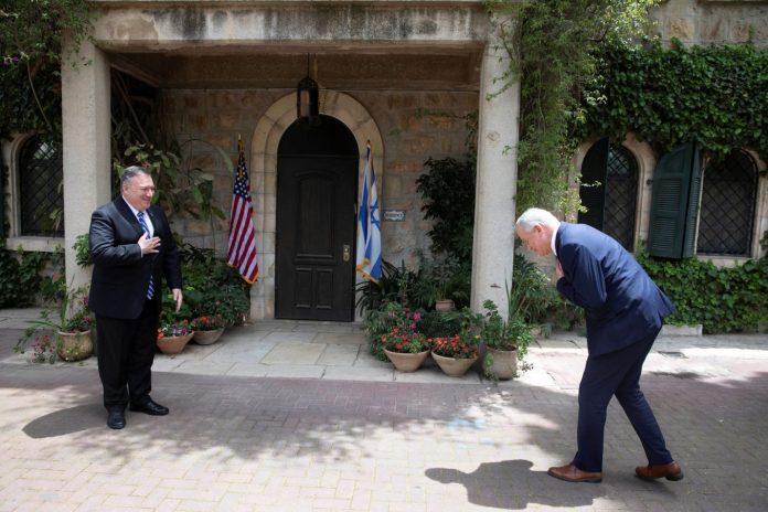 Pompeo est venu en Israël pour soutenir son Premier ministre israélien par intérim dans sa décision d’annexer un autre morceau de terre sans importance et inutile afin de continuer à tyranniser ses habitants. Et Gantz est venu pour l’apaiser et a ouvert la réunion avec un arc.