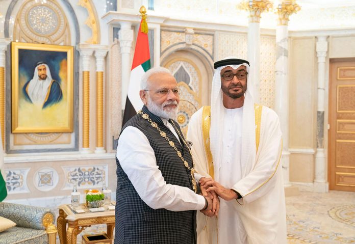 Le Premier ministre indien Narendra Modi a reçu « l’ordre de Zayed » de Son Altesse le cheikh Mohamed bin Zayed Al Nahyan, prince héritier d’Abou Dhabi et Commandant suprême des forces armées des Émirats arabes unis, en reconnaissance de son rôle dans la promotion de l’amitié et de la coopération entre les deux pays. .