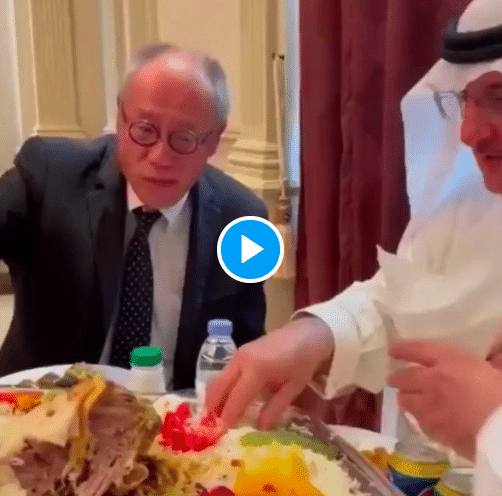 L’ambassadeur du Japon en Arabie saoudite, Fumio Iwai, a publié sur Twitter une vidéo de lui et du gouverneur de Shaqra, Adel Al Bawardi, se livrant à un plat local tout en incorporant les coutumes traditionnelles saoudiennes.