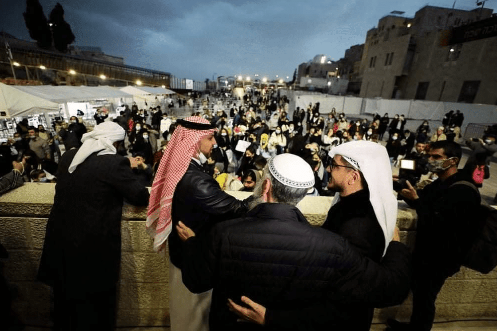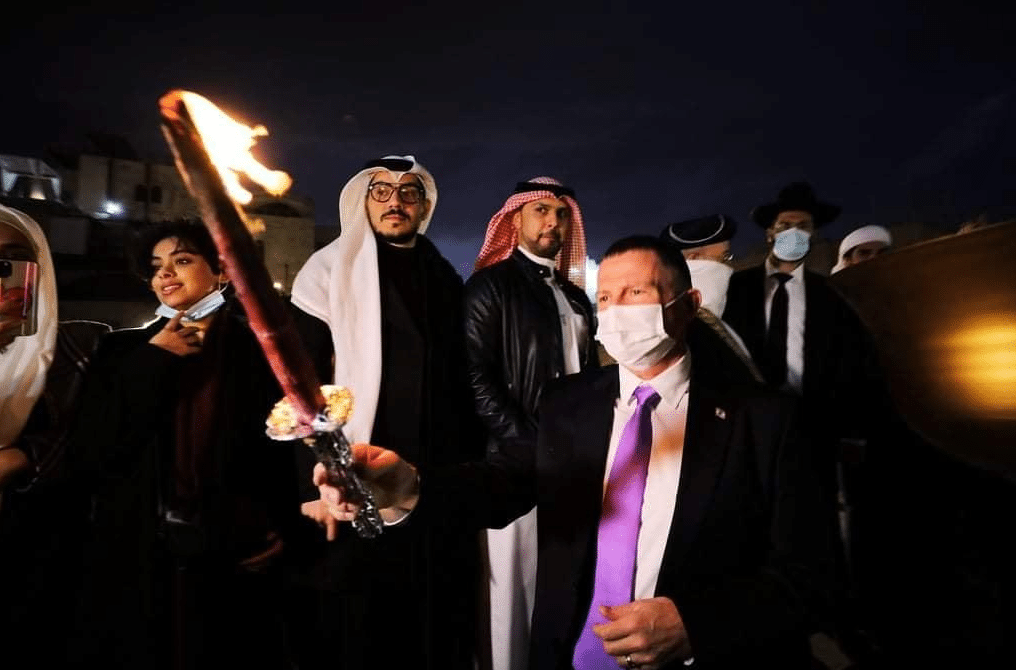 Le groupe lors de la cérémonie était composé d’activistes sociaux des pays du Golfe, en visite en Israël dans le cadre du projet Sharaka – le «projet de coopération» qui vise à créer des liens entre les jeunes d’Israël et des États arabes, précise le MEMO.