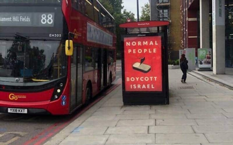 Les publicités pour les arrêts de bus à Londres lancée par BDS en faveur Palestiniens a été critiqué pour avoir encouragé le supposé antisémitisme. Des publicités pour les arrêts de bus portant la mention « Les gens normaux boycottent Israël » ont été affichées à Londres samedi, en solidarité avec l’écrivain Sally Rooney pour ce que ses créateurs ont appelé sa « position de principe » contre Tel Aviv.