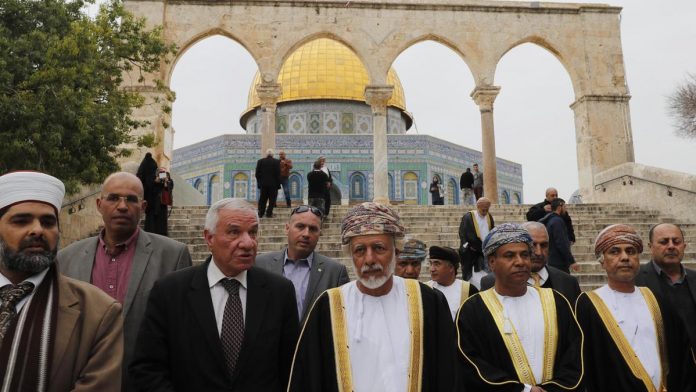 En février dernier, Youssef ben Alaoui Abdallah ministre omanais en charge des Affaires Étrangères a été l’un des rares responsables arabes à se rendre sur l’esplanade des Mosquées qui est le troisième lieu saint de l’islam, à Jérusalem-Est, qui est aujourd’hui un secteur palestinien de la ville sainte occupé et annexé à Israël.