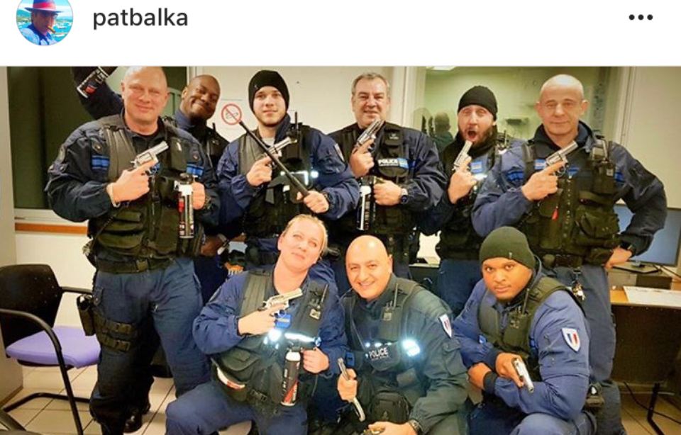Le maire de Levallois, Patrick Balkany, a publié samedi sur son compte Instagram une étrange photo de sa police municipale, arme au poing et tout sourire, avec le titre « La police municipale de Levallois vous souhaite un bon weekend. »