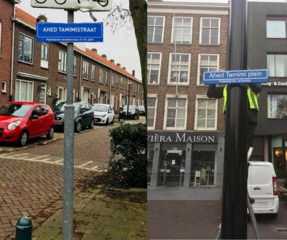 Les organisateurs de cette initiative ont fait le lien avec une héroïne du pays bas, Annie Schaft, qui comme Ahed Tamimi, a fait preuve d’un courage et d’une résistance honorable contre les antifasciste aux Pays Bas. À Leiden on peut d’ailleurs trouver aujourd’hui côte à côte les plaques de ces deux héroïnes.