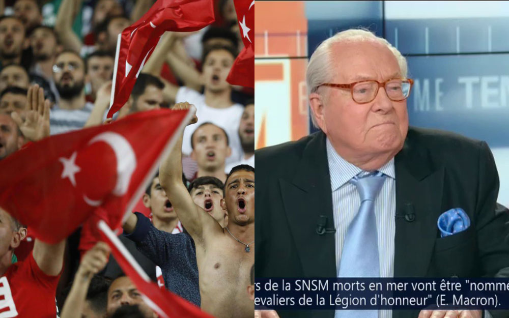 ». J’ai connu la Turquie dans les années 1950. Il n’y avait que les vieilles dames qui allaient à la Mosquée. Et puis la grande poussée d’islamisme qui s’est produite dans ces régions a rappelé à la Turquie qu’elle était le yatagan de l’Islam. Et Erdogan, récemment, faisait encore allusion à cela en disant: “Vous savez la famille Turque, ce n’est pas trois enfants, mais cinq enfants au moins”. Autrement dit, nous sommes des conquérants qui avons l’intention de le rester, s’est empressé d’interpréter Jean-Marie Le Pen. Mis sur la touche par sa fille, Jean-Marie Le Pen est persona non grata au sein de son propre parti depuis qu’il a été forcé de quitter ses fonctions. La rencontre Turquie-France s’est achevée par le score de 2-0. Ne demandez pas à Jean-Marie qui a gagné !